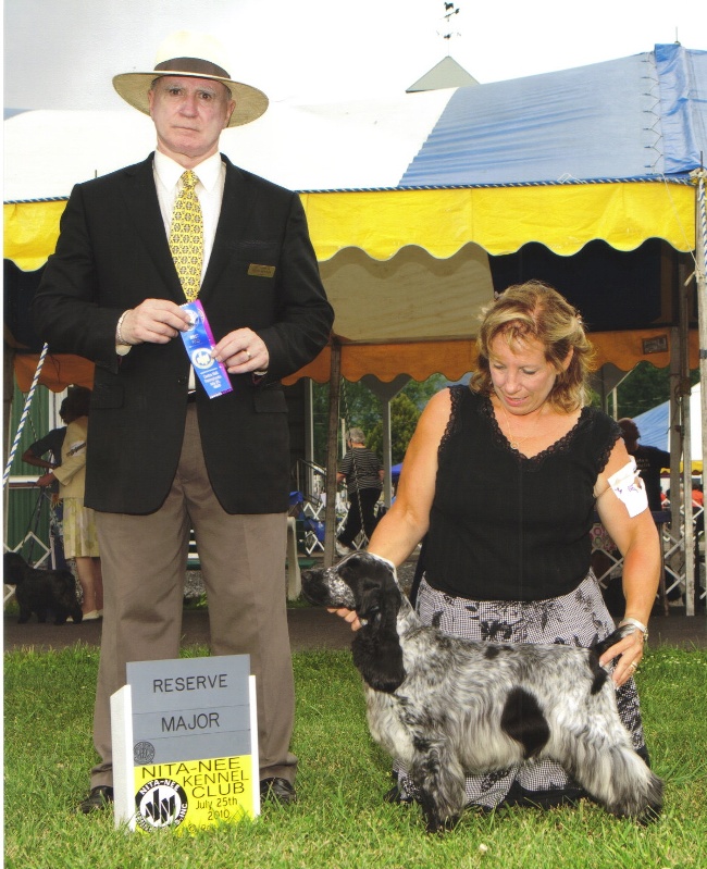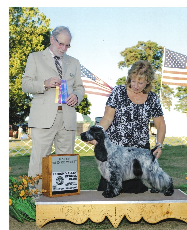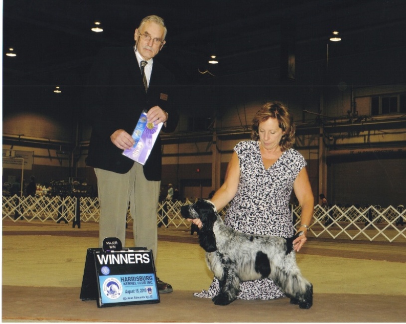 Devon is our beautiful blue roan girl from Floozie and Hob. Devon won a 3-point major from the 6-9 mos class. At 9 mos she won back- to- back Best of Breeds over multiple champions! Devon currently has 9 points and both majors.